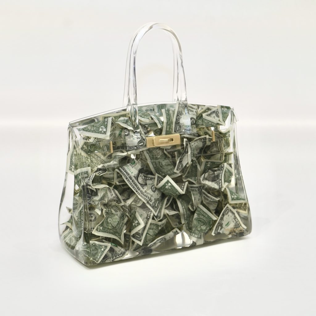 It was whilst she was at art school that the idea for Artbags first materialized. Debra took a beautiful handbag from a top couture house and adapted it into a silicone mould for casting. Whilst the first bag was sculpted in heavy white plaster, her next bag, ‘Catch’, was cast in resin and featured a goldfish inside a tank of water, mounted on a plinth. Her first pieces were highly autobiographical, as, through these, Debra visualized how she was feeling about various areas of her life. Her ideas now are to explore consumption and the complex relationship with material objects both as consumable fashion goods but also as harbingers of memories, love, and aspirations. With their kitschy elements, her works are a clear nod to pop art, brought into the digital age; now more than ever, how we curate and display the emblems that we love, and they, in turn, curate and display us. She has since lived and worked in New York, Europe and London, where she is now based.