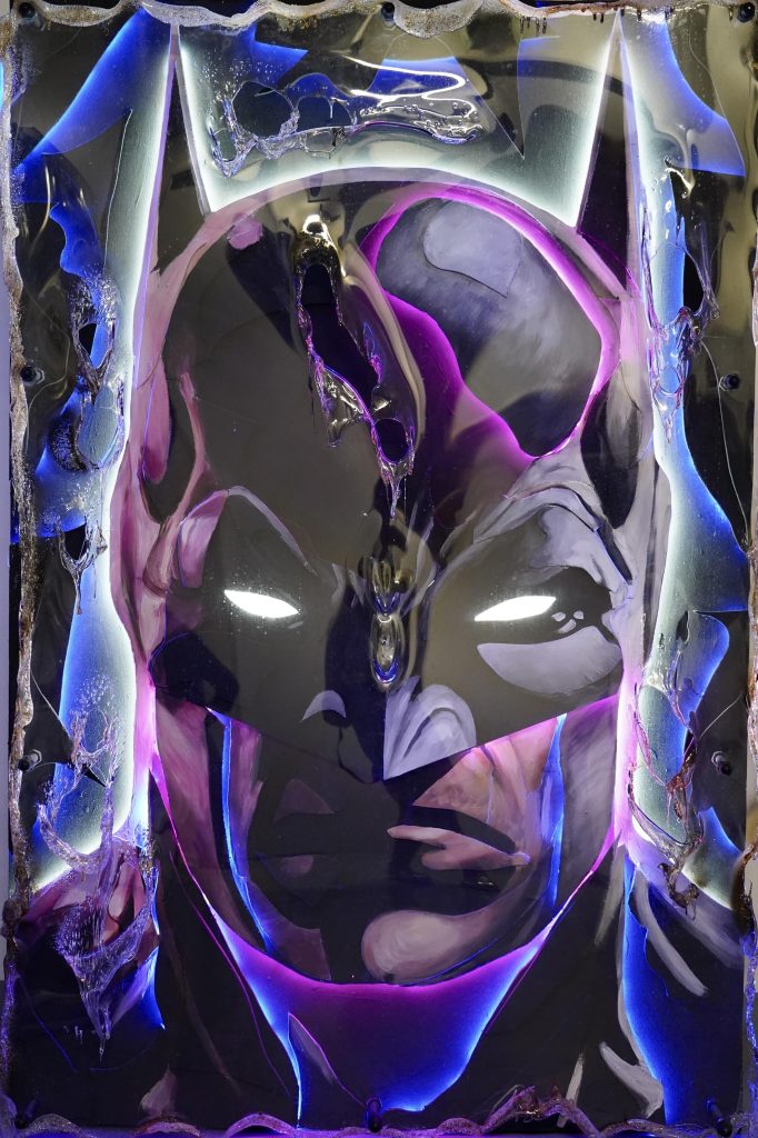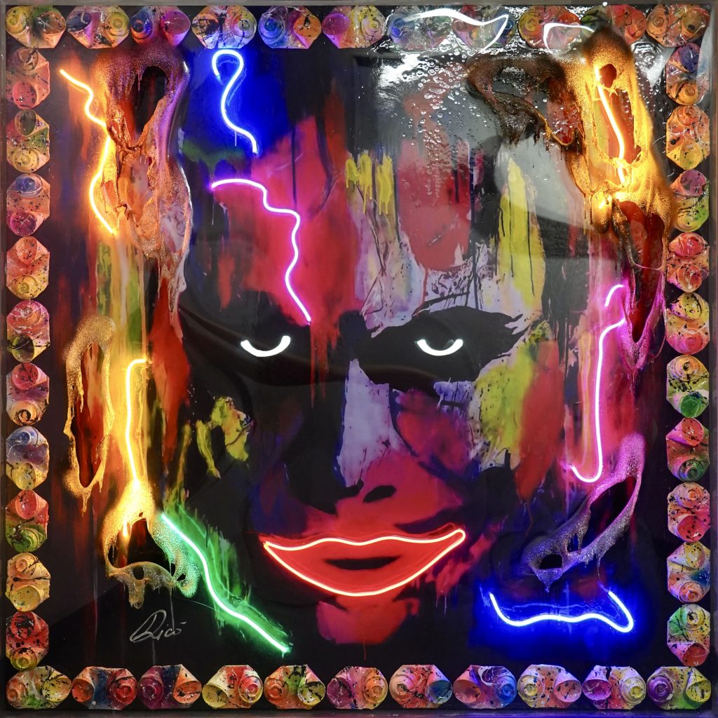 Curious and multi-talented by nature, he felt the need to broaden his creative horizons and traveled to America. Pop Art became his favorite point of reference, and all the innovative color and visual influences that he absorbed would shortly come together to create his own original creative style. After returning to Rome, he fully immersed himself in experimenting with new techniques and materials, and in doing so he developed what would become his signature style from moment on: the combustion of Plexi-glas. A regenerative synthesis that allows him to breathe new life and new meaning into contemporary legends.